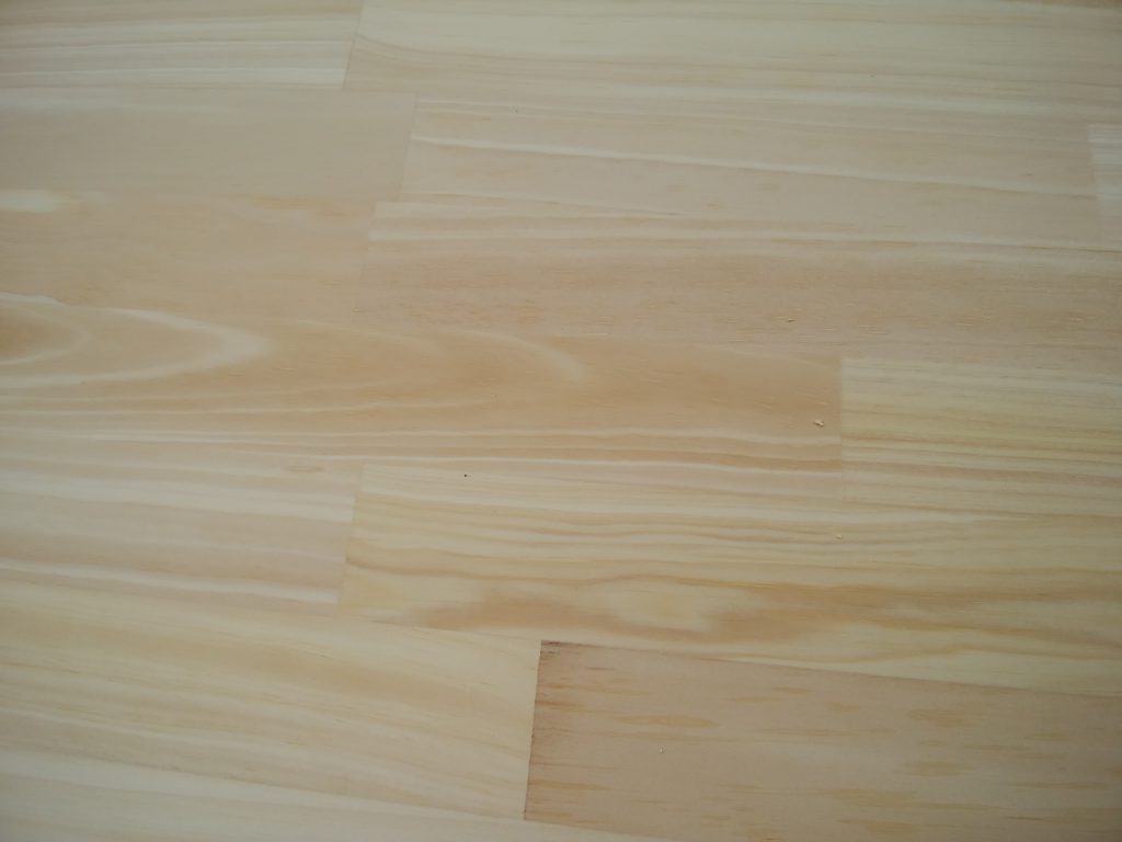木材を細かなブロック状に加工したもの「ラミナー」を貼り合わせて作られた板材です。