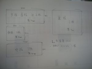展開図を描いてみる事で足りないパーツに気付いたり、必要な金物がいくつ必要かなどを知ることができます。