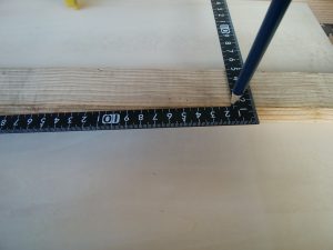 ①さしがねなどで切断個所にまっすぐ線を引きましょう。