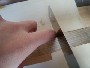 ・線通りに切れたけど、ノコギリが傾いて切断面が斜めになっちゃった・・・