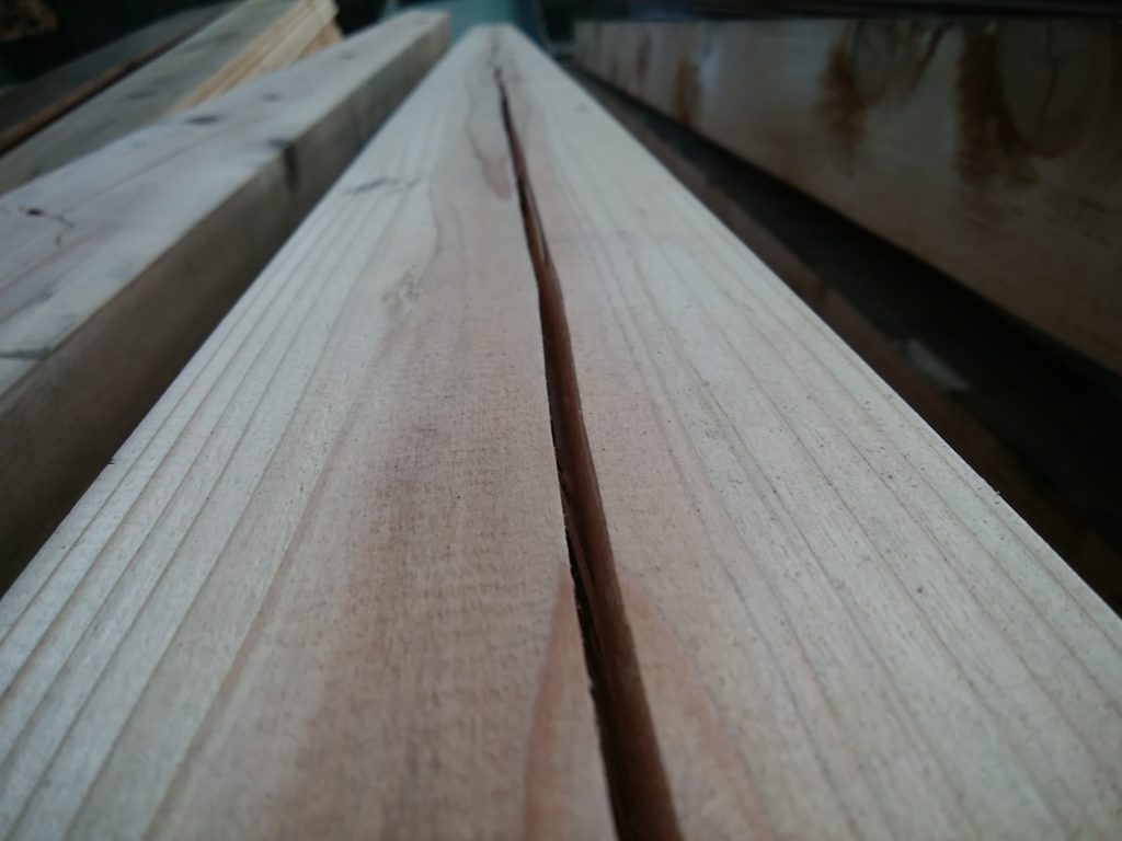 木材は曲がったり、割れたりします。