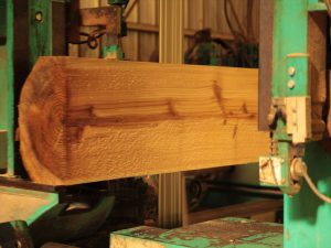 大きなノコギリで使いやすい形に製材されます。