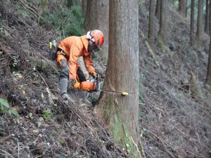 森林組合や、林家(りんか)の方によって伐採されます。