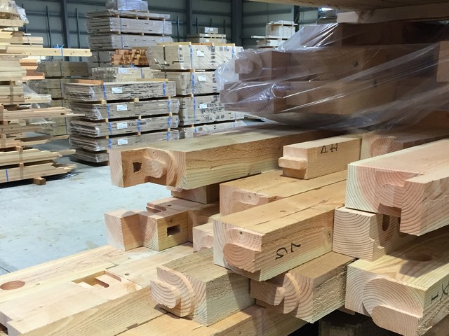 大きな機械を使って、家の材料の木材を「現場で組むだけ」の状態に出来るのです。