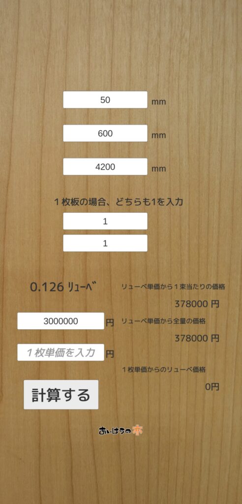 もしあなたが建築士さんで設計をされる方、木を扱う職人さんであればこのリューベ単価の計算方法を覚えておくと良いかと思います。そんなに難しいものでもないし、手持ちのスマホや携帯などで計算できるので。