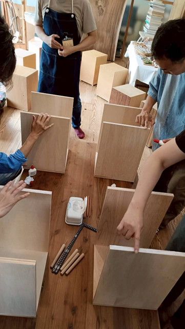 あいはらの木のワークショップは、およそ4時間をかけて開催されます。 木材を選び、構造を学び、一工程ずつ丁寧にボンドを塗り、ネジを締め、そして音を調整する。